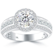 2.14 Carat G-SI1 Natural Round Diamond Engagement Ring 18k White Gold Pave Halo
