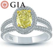 2.14 Ct. GIA Certified Natural Fancy Yellow Oval Cut Diamond Engagement Ring 18k