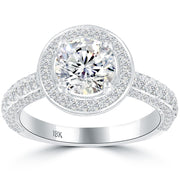 2.16 Carat G-SI1 Natural Round Diamond Engagement Ring 18k White Gold Pave Halo