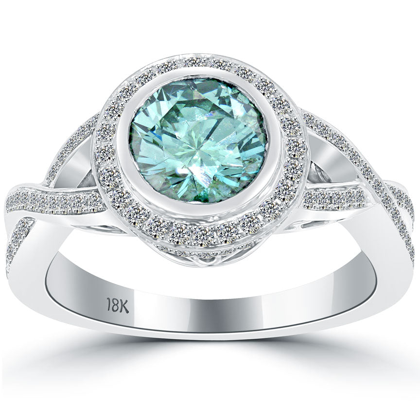 2.19 Carat Fancy Blue Diamond Engagement Ring 18k White Gold Pave Halo