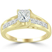 A classic piece with a modest 1.00ct princess cut diamond with a J color and VS1 clarity as the focal point with an additional 1.20ct princess cut diamond accents of F color and VS clarity in a 14k white gold Channel setting. This sophisticated 2.20ct T.W ring will be a dazzling statement of love.