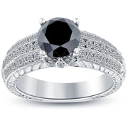 2.21 Carat Certified Natural Black Diamond Engagement Ring 14k White Gold