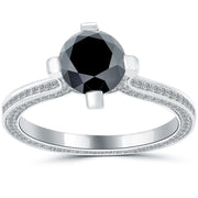 2.23 Carat Certified Natural Black Diamond Engagement Ring 18k White Gold
