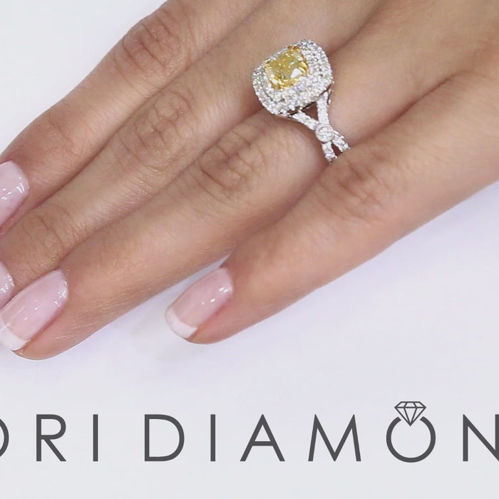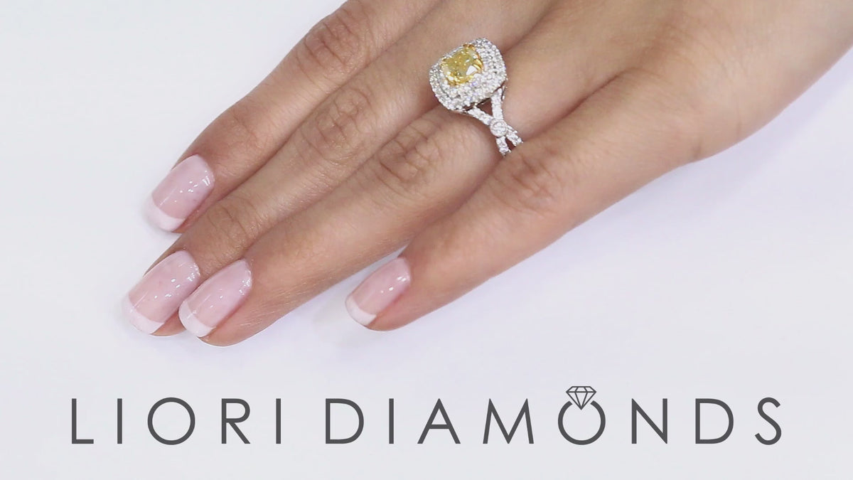 2.23 Ct. GIA Certified Natural Fancy Yellow Cushion Cut Diamond Engagement Ring