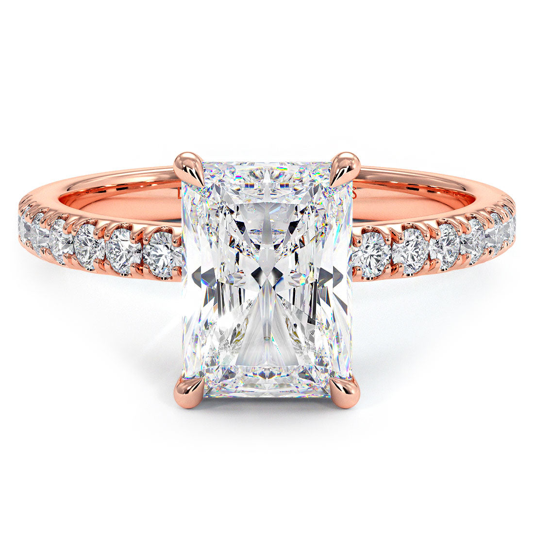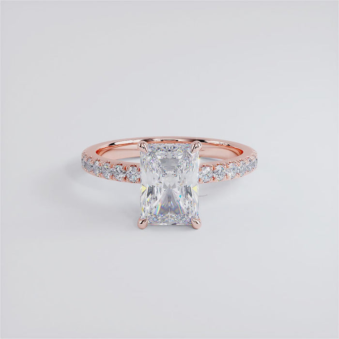 2.55ctw GIA Certified E-VS1 Radiant Cut Under Halo Petite Micropavé Lab Grown Diamond Engagement Ring set in 14k Rose Gold
