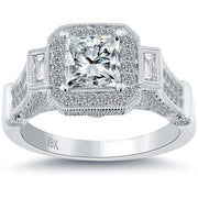 2.24 Carat G-VS2 Certified Princess Cut Diamond Engagement Ring 18k Pave Halo