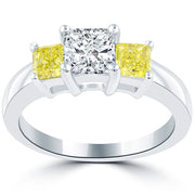 2.28 Carat Fancy Yellow & White Radiant Cut Three Stone Diamond Engagement Ring