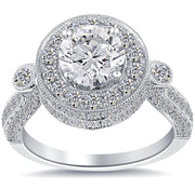 2.31 Carat E-SI2 Pave Halo Round Diamond Engagement Ring 14k Gold Vintage Style