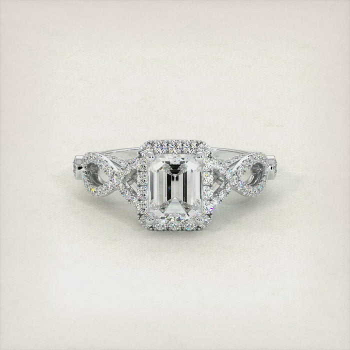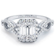 Are you on the lookout for a diamond engagement ring with a vintage feel? Our 2.32 total carat weight emerald cut diamond engagement ring is one of the most spectacular pieces we offer in this price range. The centerpiece diamond weighs just over 1.50 carats and has been feather-filled to enhance its clarity. Set in 18K white gold, this is one of the best exclusive diamond rings you can buy online.