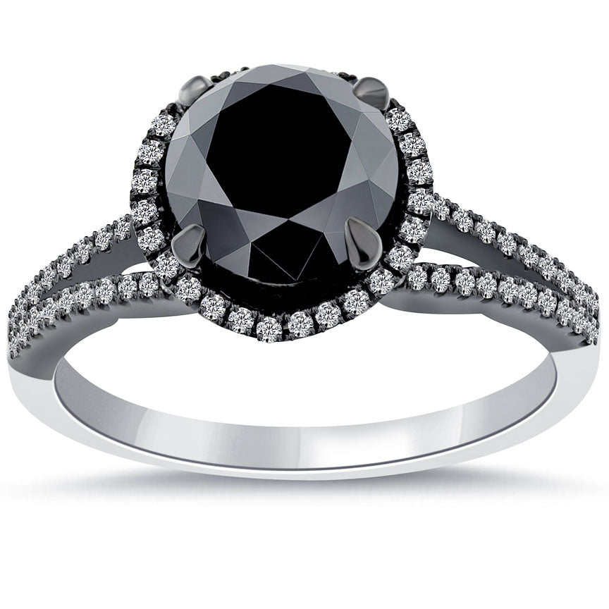 2.33 Carat Natural Black Diamond Engagement Ring 18k Black Gold Pave Halo