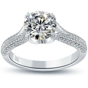 This stunning diamond engagement ring is perfectly set up with a 1.70 ctw white round brilliant diamond center stone and 0.64 ctw of gorgeous sides stones. This unique diamond engagement ring is complimented by round brilliant diamonds set in a micro pave setting along either side of the band. This round diamond engagement ring is made in 18kt white gold.