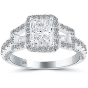 2.35 Carat G-VS2 Radiant Cut Diamond Engagement Ring 18k White Gold Pave Halo
