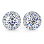 2.35 Carat H-SI Pave Halo Diamond Studs Earrings 18k White Gold