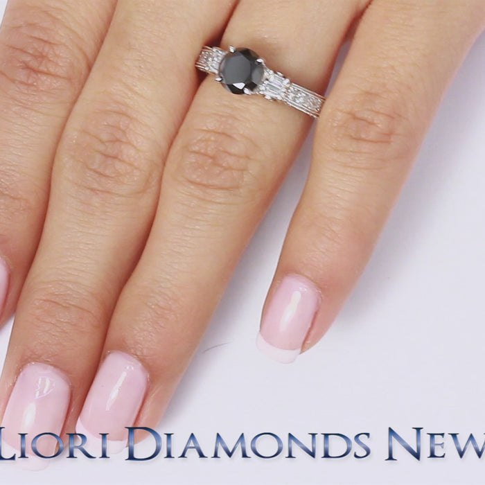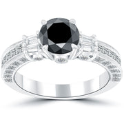 2.38 Carat Certified Natural Black Diamond Engagement Ring 14k White Gold