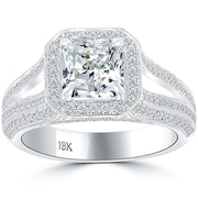 2.40 Carat I-VS2 Radiant Cut Diamond Engagement Ring 18k Pave Halo Vintage Style