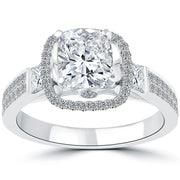 2.42 Carat F-VS2 Cushion Cut Diamond Engagement Ring 18k White Gold Pave Halo