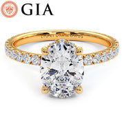 2.42ctw GIA Certified Oval Cut Under Halo Petite Micropavé Lab Grown Diamond Engagement Ring set in 14k Yellow Gold