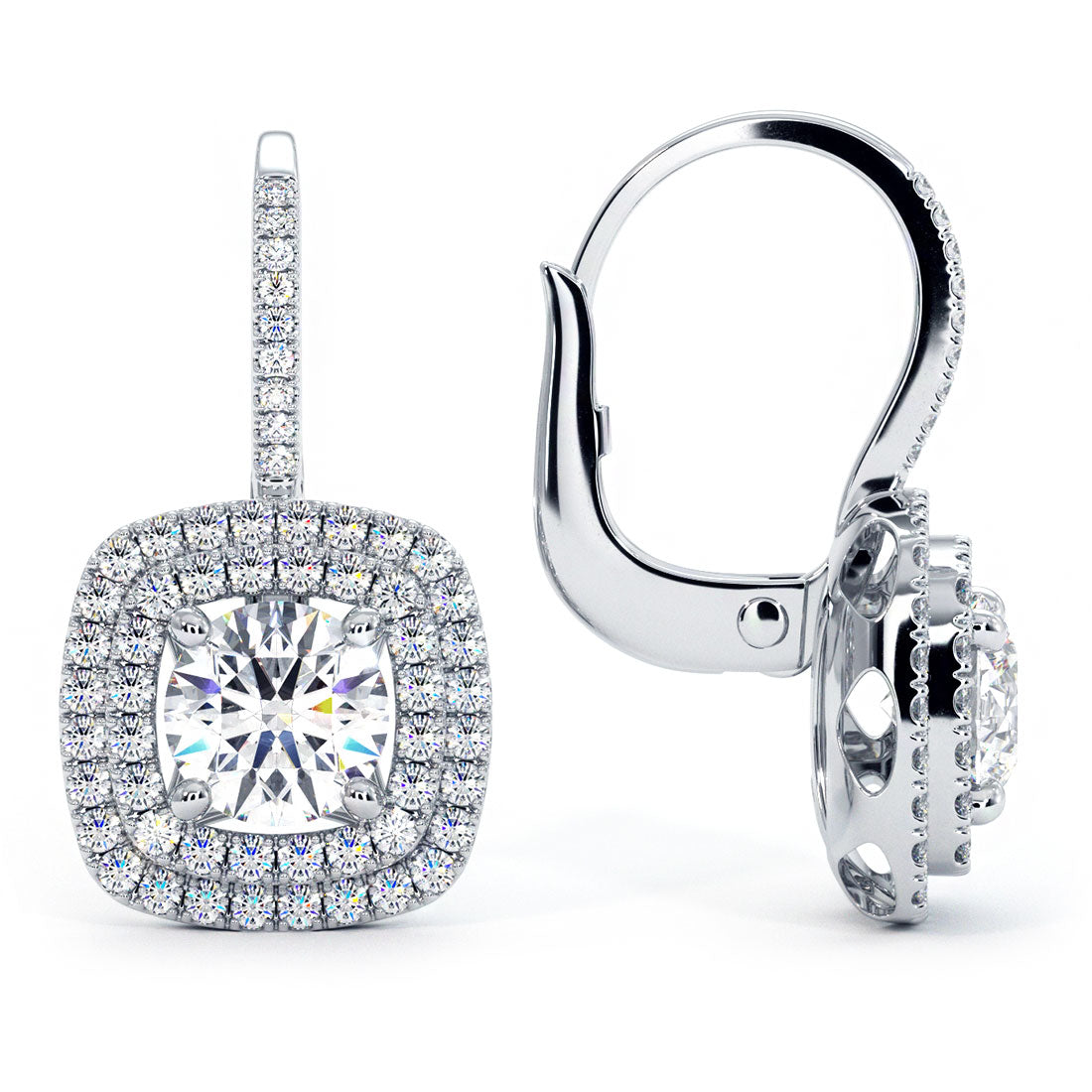 2.45 Carat Round Diamond Leverback Hanging Drop Earrings 18k White Gold