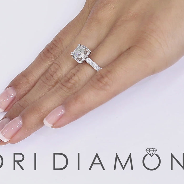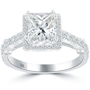 2.45 Carat F-SI3 Princess Cut Diamond Engagement Ring 18k White Gold Pave Halo