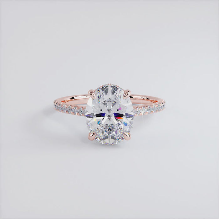 2.55ctw GIA Certified Oval Cut Petite Micropavé Lab Grown Diamond Engagement Ring set in 14k Rose Gold