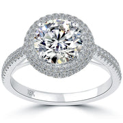 2.48 Carat H-SI1 Natural Round Diamond Engagement Ring 18k White Gold Pave Halo