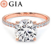 2.49ctw E-VVS2 GIA Certified Round Brilliant Under Halo Petite Micropavé Lab Grown Diamond Engagement Ring set in 14k Rose Gold