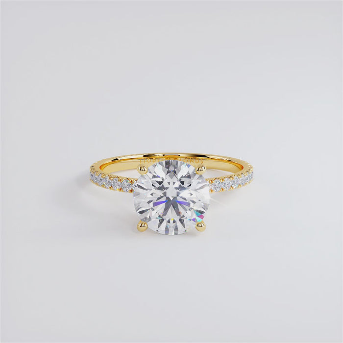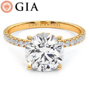 2.49ctw E-VVS2 GIA Certified Round Brilliant Under Halo Petite Micropavé Lab Grown Diamond Engagement Ring set in 14k Yellow Gold
