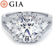 A three stone micropavé split shank diamond engagement ring set with 2.50 Carat Round Cut Lab Grown Diamond.