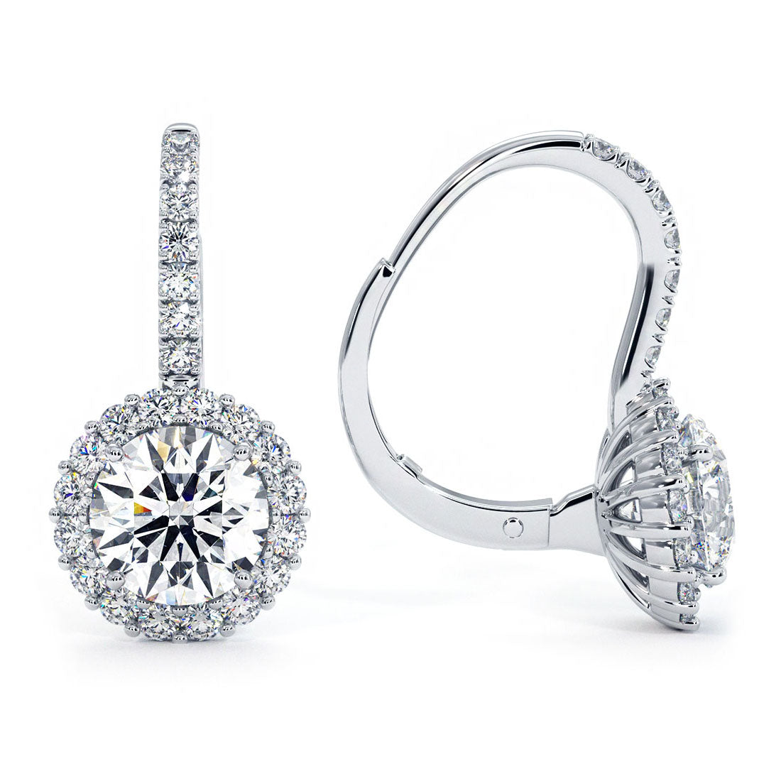 2.53 Carat Round Diamond Leverback Hanging Drop Earrings 18k White Gold