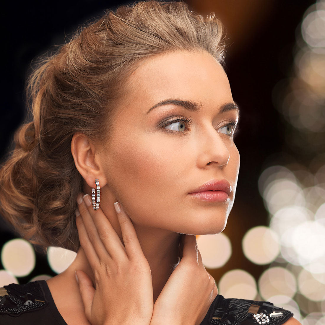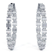 2.55 Carat Large inside out Emerald Cut Cluster Diamond hoop earrings 14k White Gold