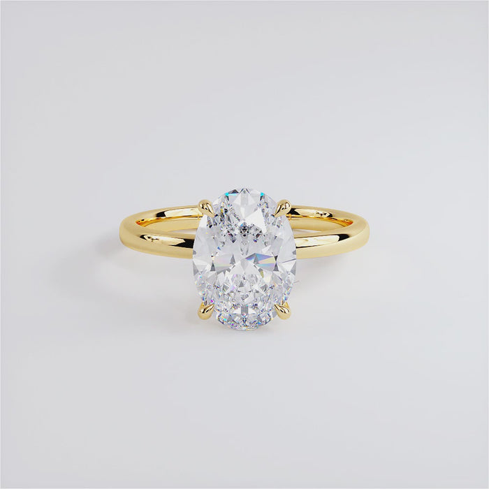 2.64ct GIA Certified Oval Cut Petite Wire Solitaire Lab Grown Diamond Engagement Ring set in 14k Yellow Gold