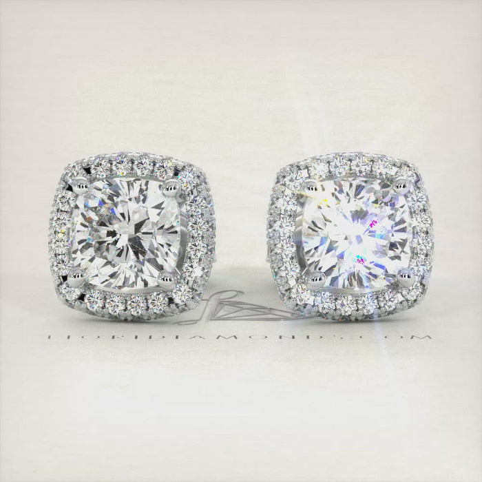 2.65 Carat F-SI Cushion Cut Pave Halo Diamond Studs Earrings 18k White Gold