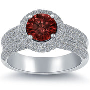 2.75 Ct. Fancy Red Natural Diamond Engagement Ring 14k White Gold Vintage Style