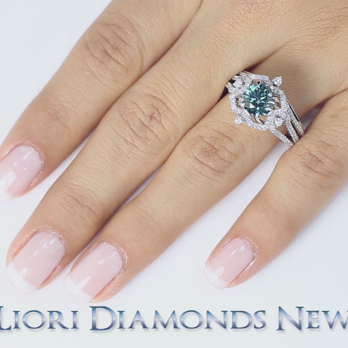 If you have questions about the 2.76 Carat Fancy Blue Round Cut Diamond Engagement Ring & Wedding Band Set 18k, please contact Liori Diamonds today.