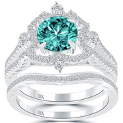 2.76 Carat Fancy Blue Round Cut Diamond Engagement Ring & Wedding Band Set 18k
