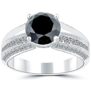 2.79 Carat Certified Natural Black Diamond Engagement Ring 14k White Gold