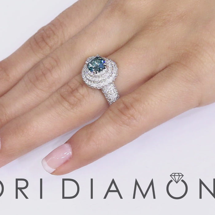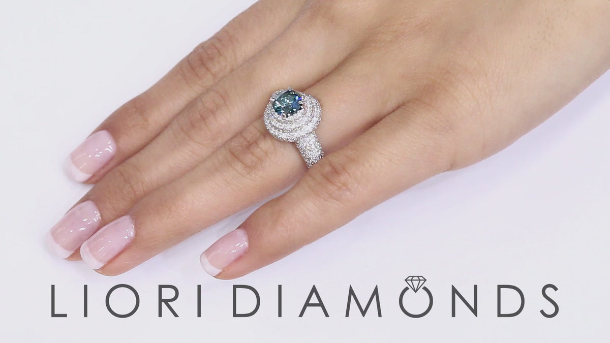 2.86 Carat Fancy Blue Diamond Engagement Ring 14k White Gold Pave Halo