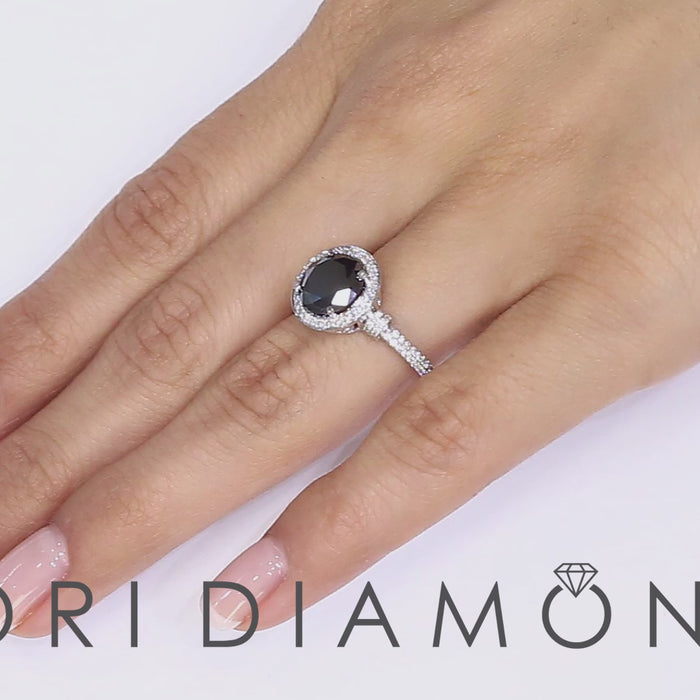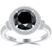 2.95 Carat Natural Black Diamond Engagement Ring 18k White Gold Vintage Style
