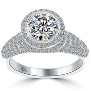 2.96 Carat F-SI1 Natural Round Diamond Engagement Ring 18k White Gold Pave Halo