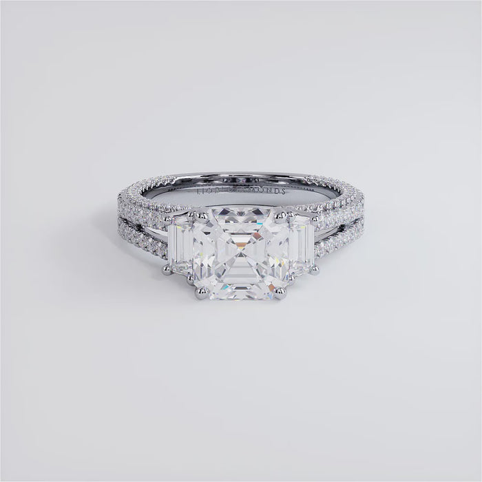 2 Carat Asscher Cut Three Stone Micropavé Split Shank