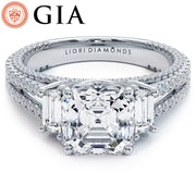 2 Carat Asscher Cut Three Stone Micropavé Split Shank