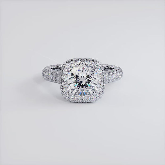 2 Carat Cushion Cut Halo 3D Micropavé Shank