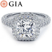 2 Carat Cushion Cut Halo 3D Micropavé Shank