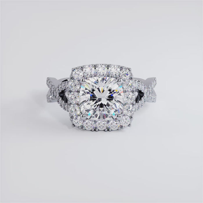 2 Carat Cushion Cut Square Halo Infinity Twist