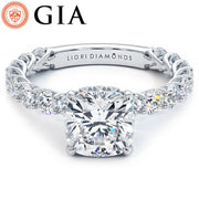 A unique under halo lucida setting diamond engagement ring set with 2.00 Carat Cushion Cut Lab Grown Diamond.