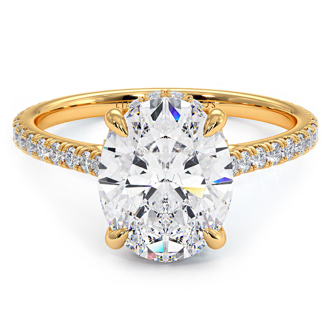 A Petite micropavé diamond engagement ring set with 2 Carat Oval Cut Lab Grown Diamond.