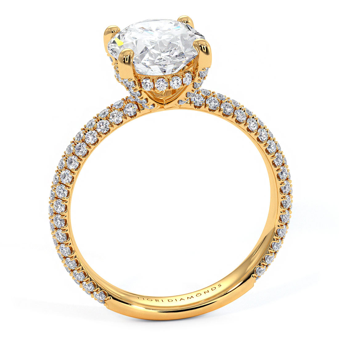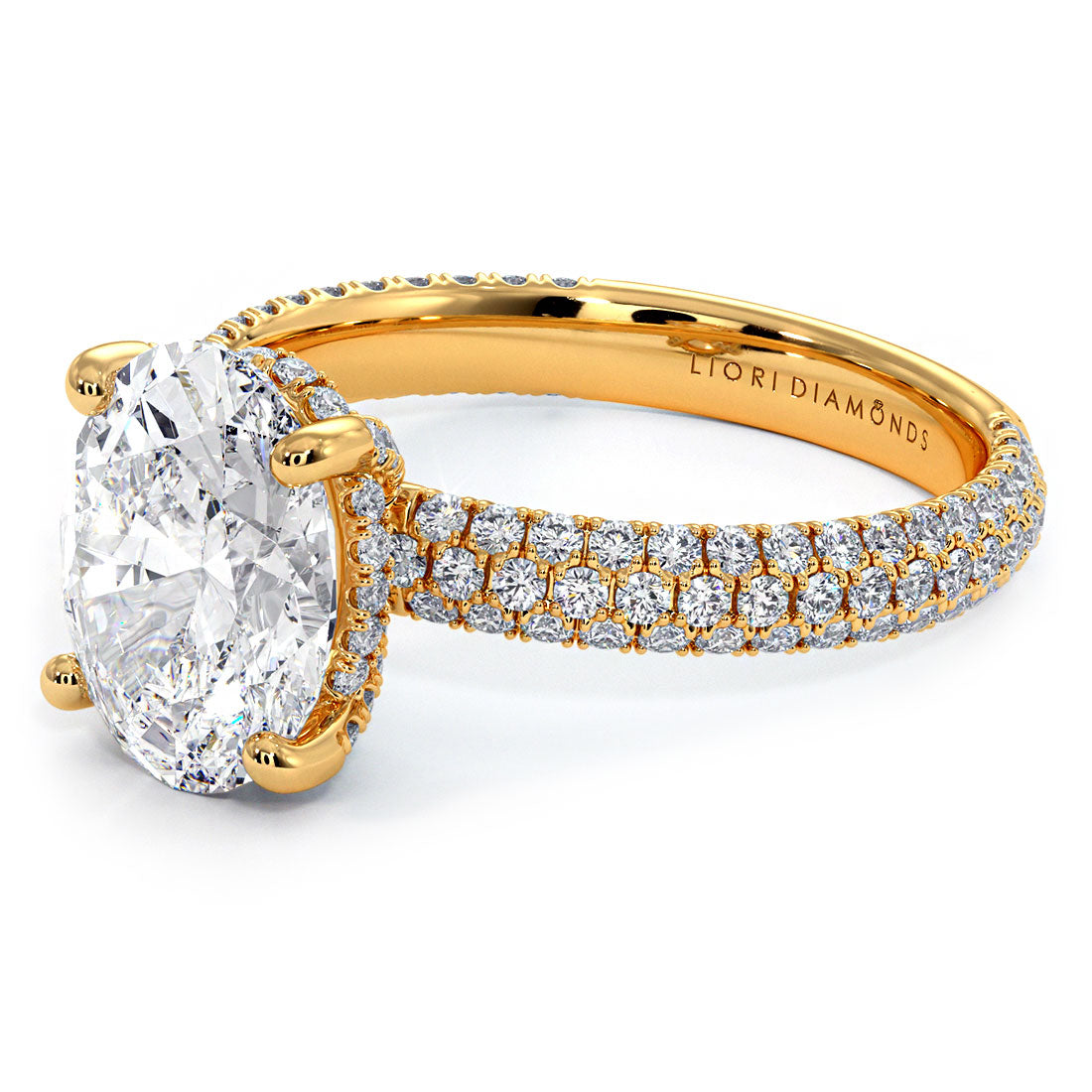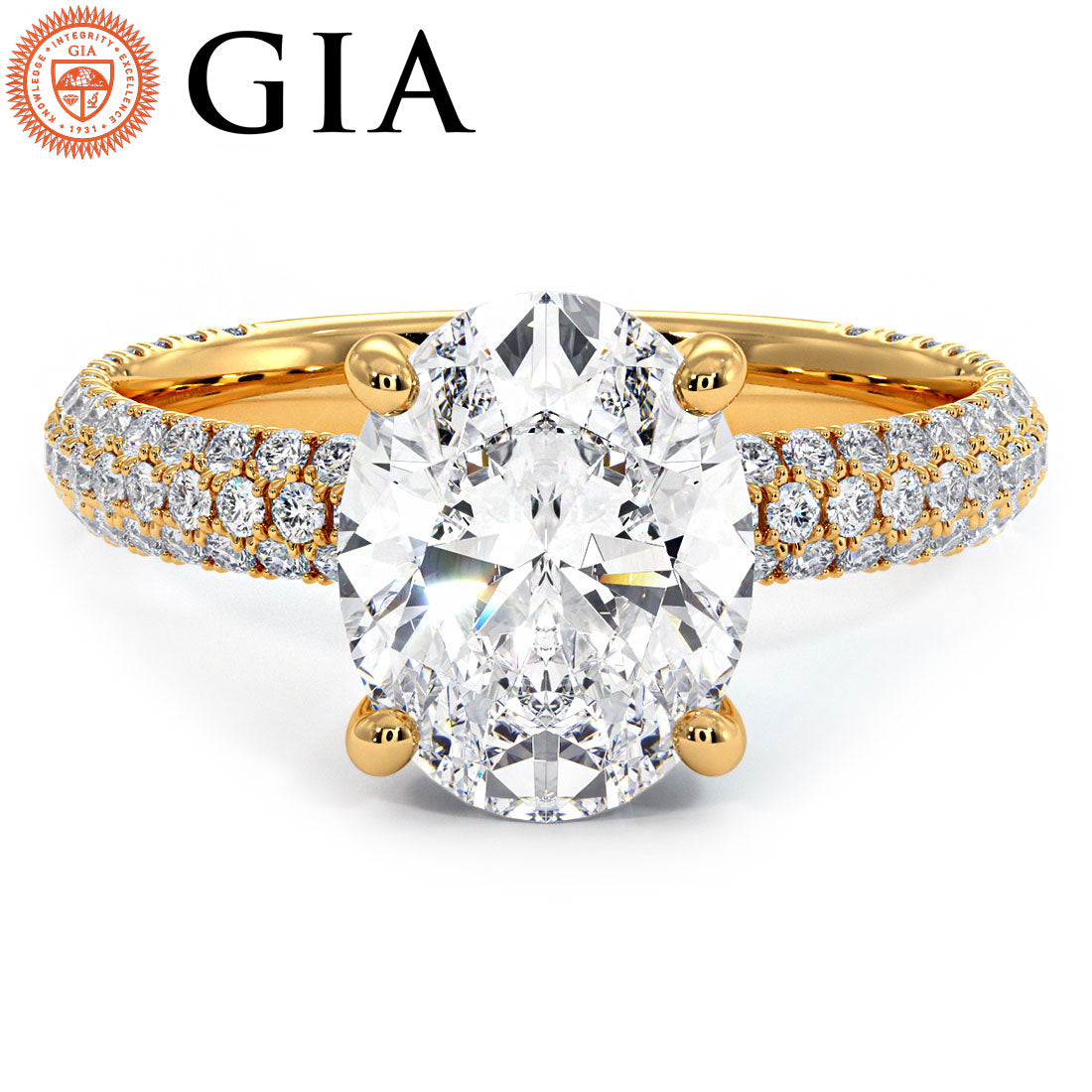 A trio micropavé diamond engagement ring set with 2 Carat Oval Cut Lab Grown Diamond.