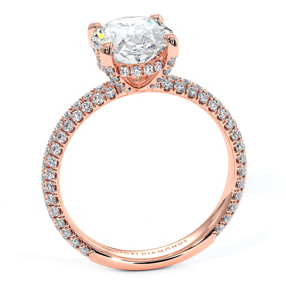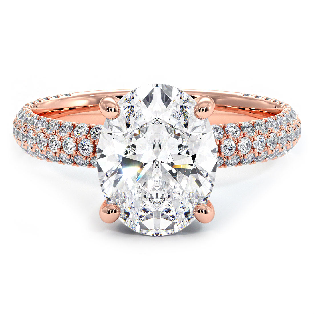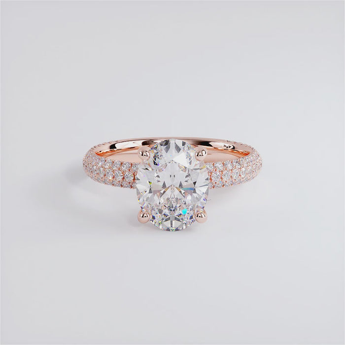A trio micropavé diamond engagement ring set with 2 Carat Oval Cut Lab Grown Diamond.