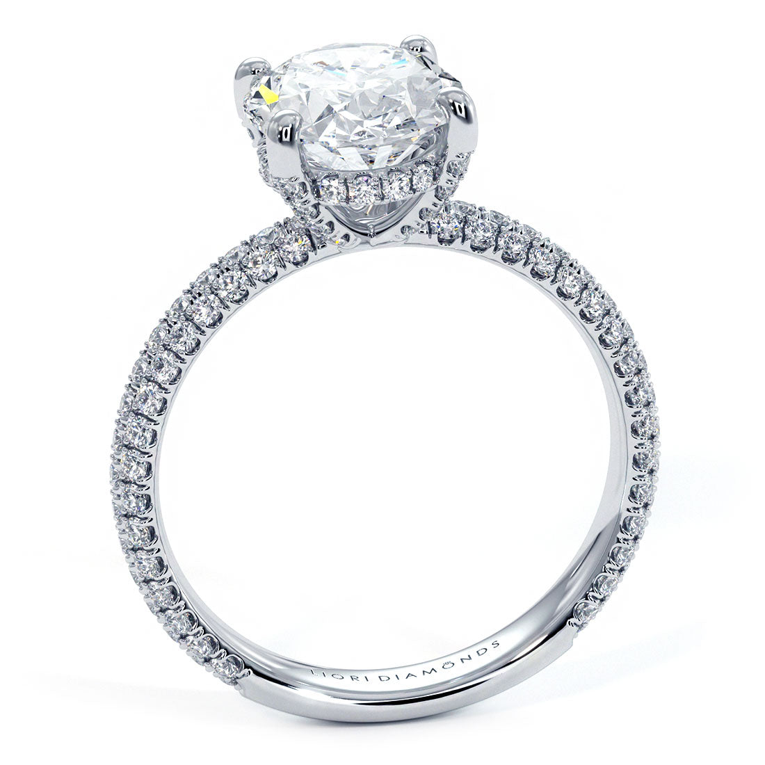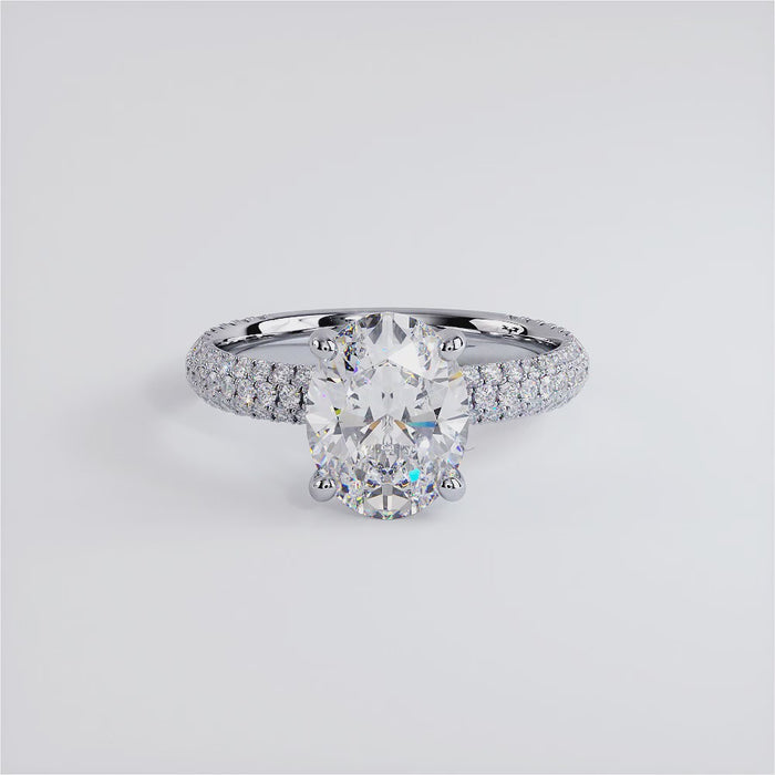 A trio micropavé diamond engagement ring set with 2 Carat Oval Cut Lab Grown Diamond.