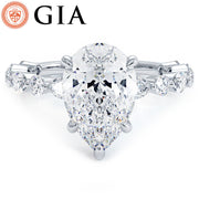 An alternating round & marquise diamonds engagement ring set with 2.00 carat pear shape lab grown diamond.